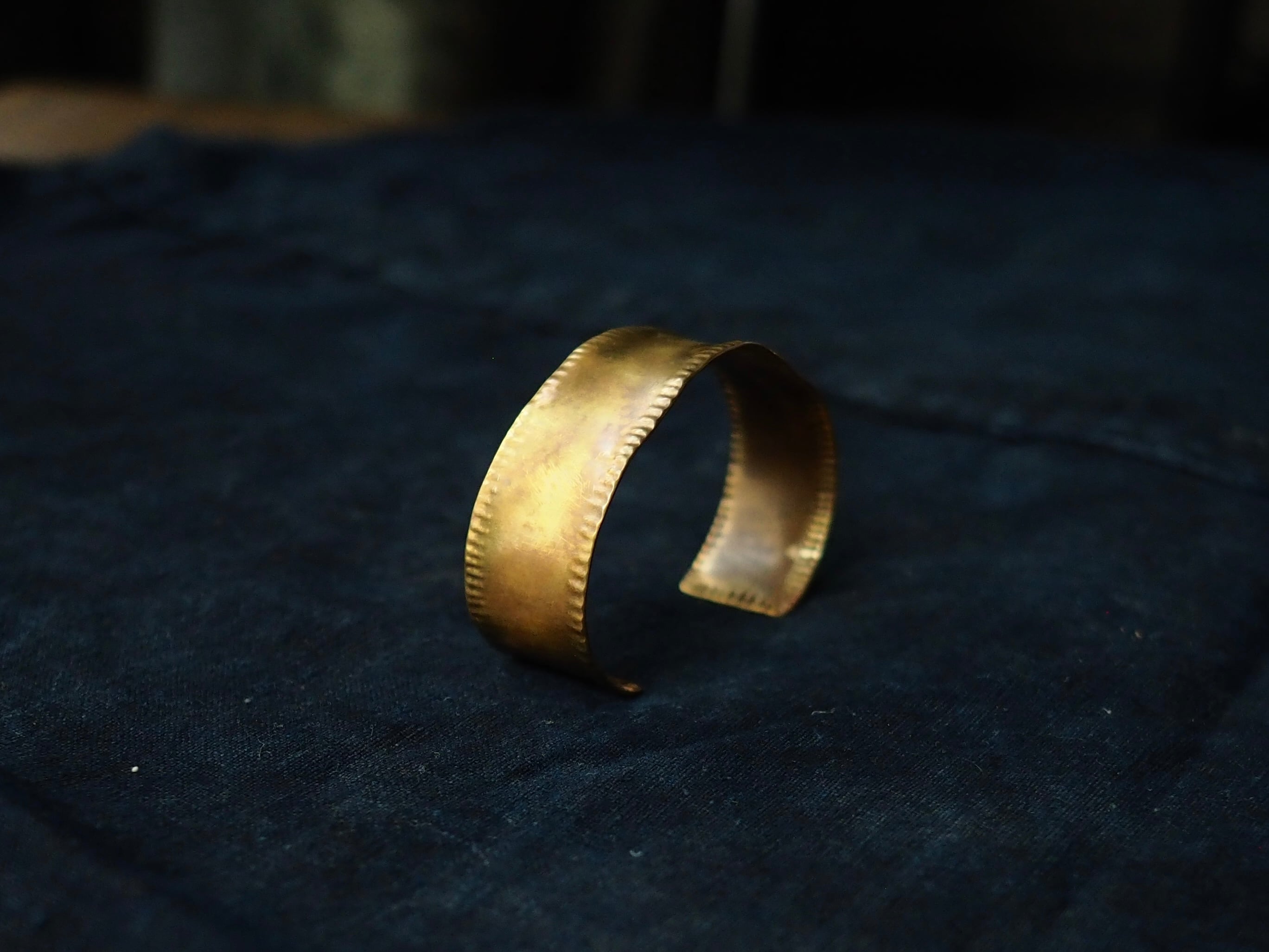 こちらは、手作業でひとつひとつ仕上げられた真鍮のバングルです。火をあてた金属の色の変化を感じられる独特の仕上げは、時間とともに味わいが増していきます。サイズ調整も可能ですが、やりすぎにはご注意ください。バングルMサイズは標準体型女性〜細身体型男性向けです。