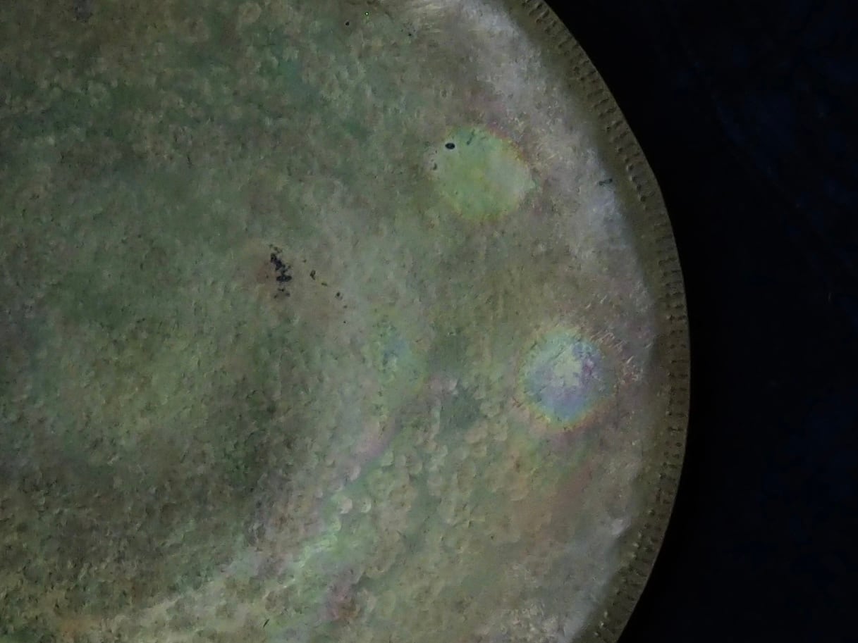 こちらは、薄い板を手作業で叩いて仕上げられた真鍮の皿です。軽やかな使い心地が魅力で、アクセサリー置きや焼き菓子の盛り付けなど、多様な用途にお使い頂けます。デザインは縁に刻印のある細めのリムで、どんなスタイルにも合わせやすいのが特徴です。