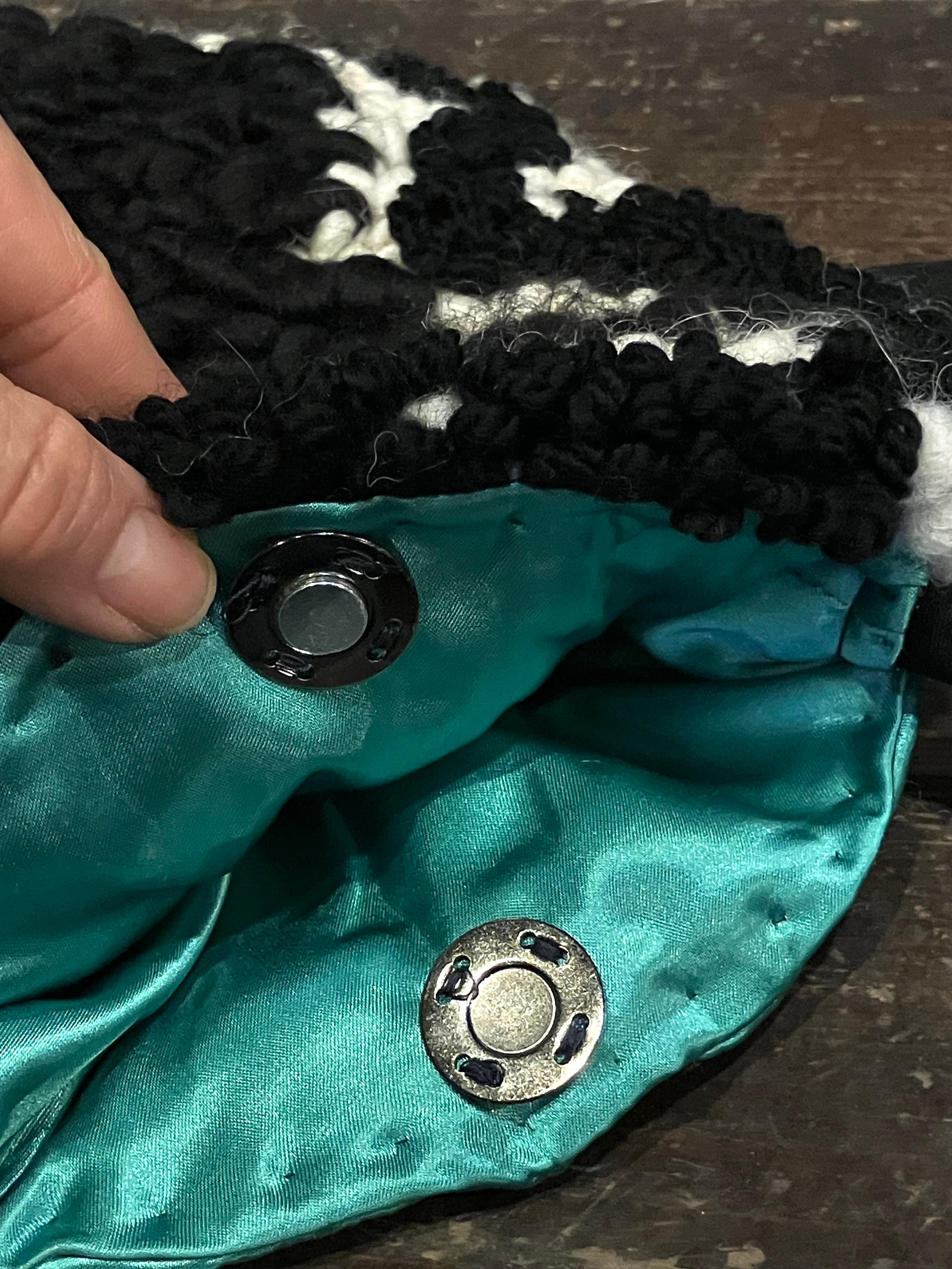 ウールの毛糸をパンチニードルという技法で描いたモコモコの生地が特徴のポシェットです。コーディネートに温かみを添えます。 裏地にはサテンを使用し、内部にはボタンを搭載。デイリー使いはもちろん、ちょっとしたお出かけにも最適かと思います。